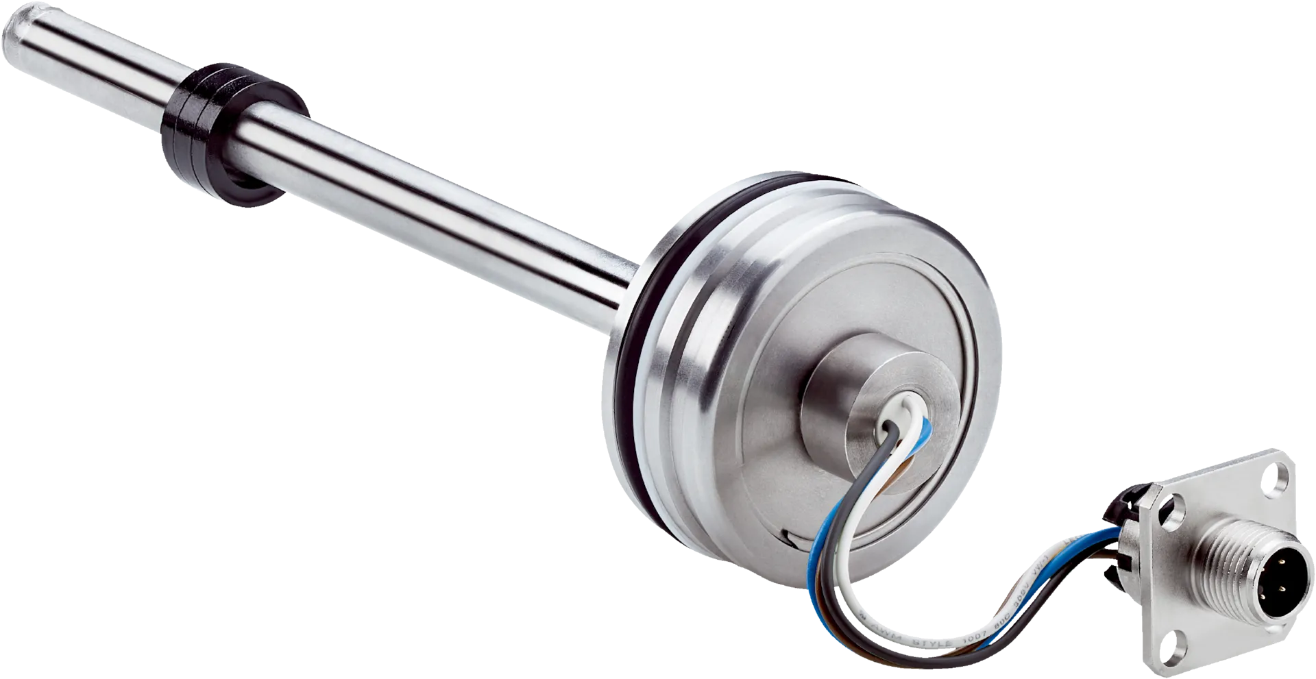 Linear encoders | MAX | MAX48A-32V10HE0310 | Type: 48 mm 48f7 for IN cylinder mounting – cylinder bore hole 48H8 | Cable connection direction: Axial | Pipe diameter / Damping zone / End cap: 10 mm / 63 mm / Flat | Supply voltage: 24 V DC (8 … 32 V DC) | Communication interface: Analog / Voltage | Connection type: Male connector, M12 type L (24×24 mm), 4-pin | Measuring range: 0 mm … 310 mm | Output signal: 0.5 V DC … 4.5 V DC