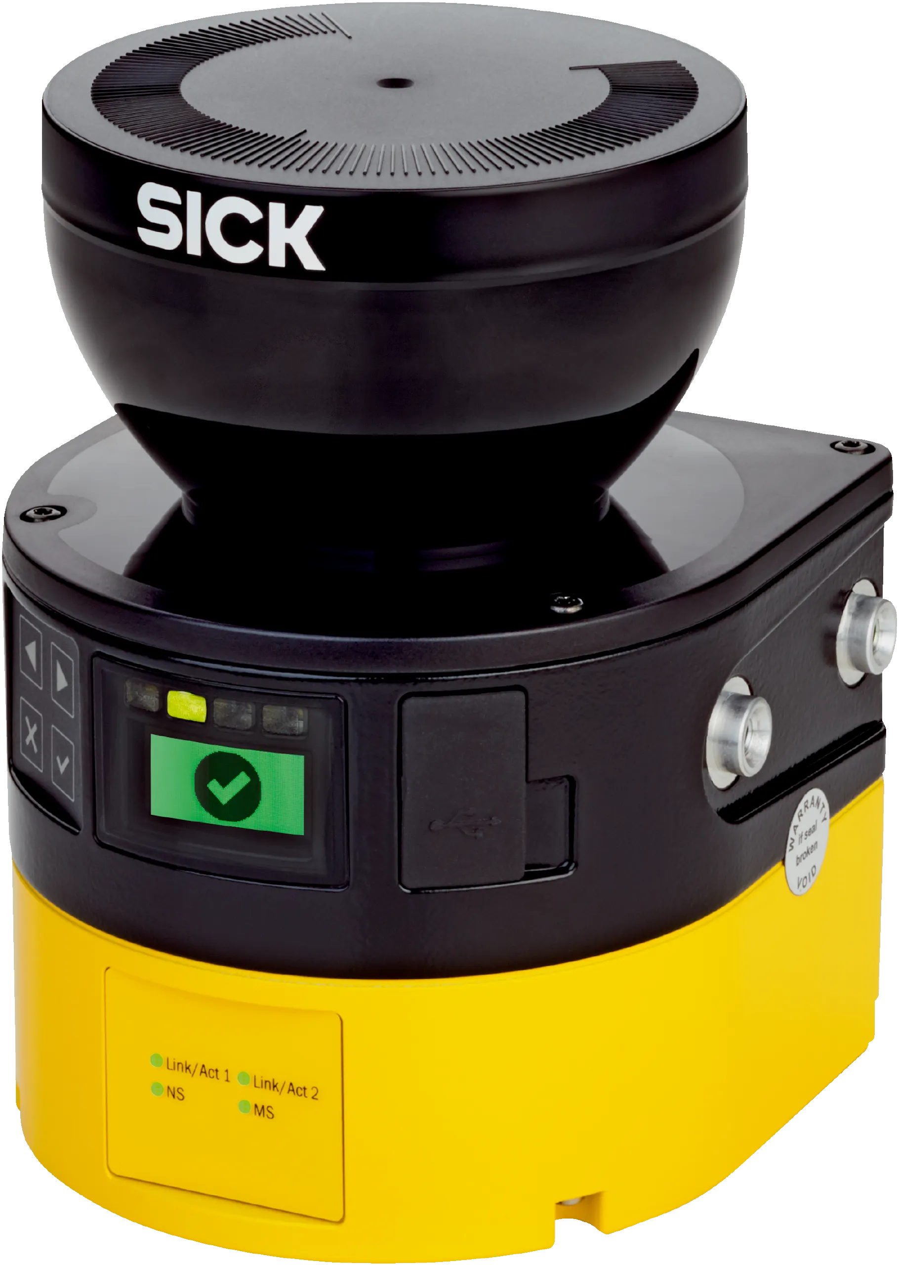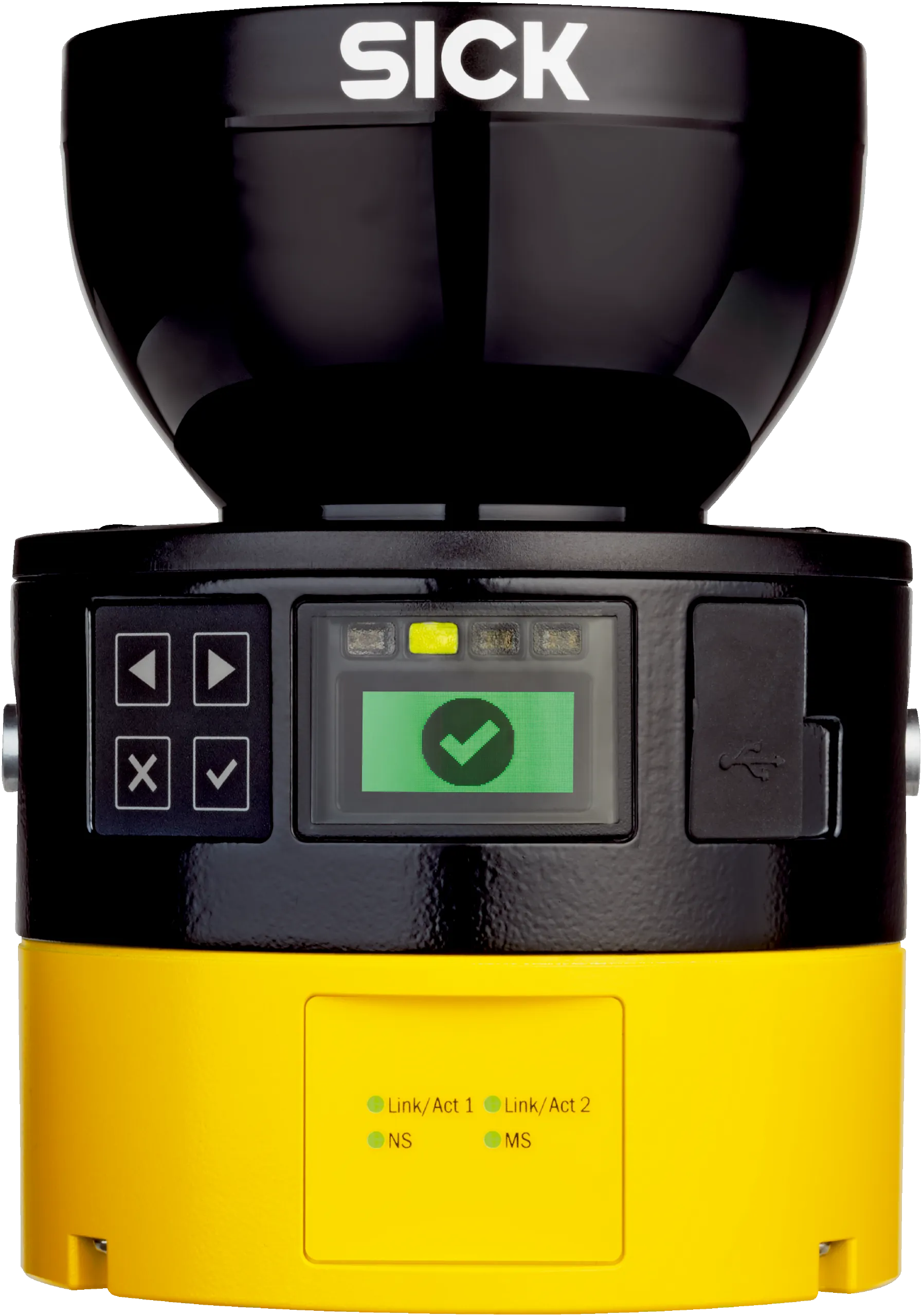 Safety laser scanners | microScan3 | MICS3-CBAZ40PZ1P01 | Product version: microScan3 Pro – PROFINET | Model: Sensor including system plug (pre-mounted on the underside) | Integration in the control s…