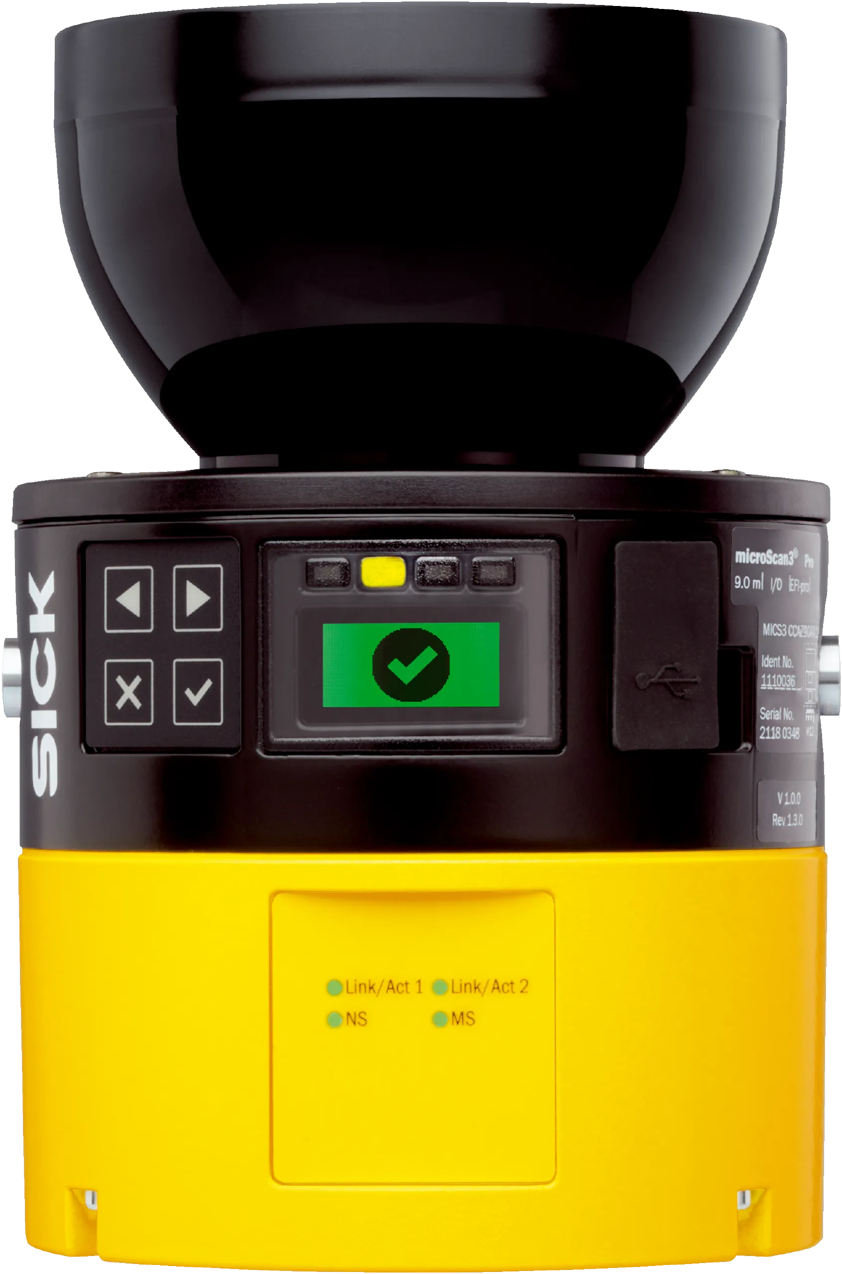 Safety laser scanners | microScan3 | MICS3-CCAZ40AN1P01 | Product version: microScan3 Pro I/O | Model: Sensor including system plug (pre-mounted on the underside) | Integration in the control system:…