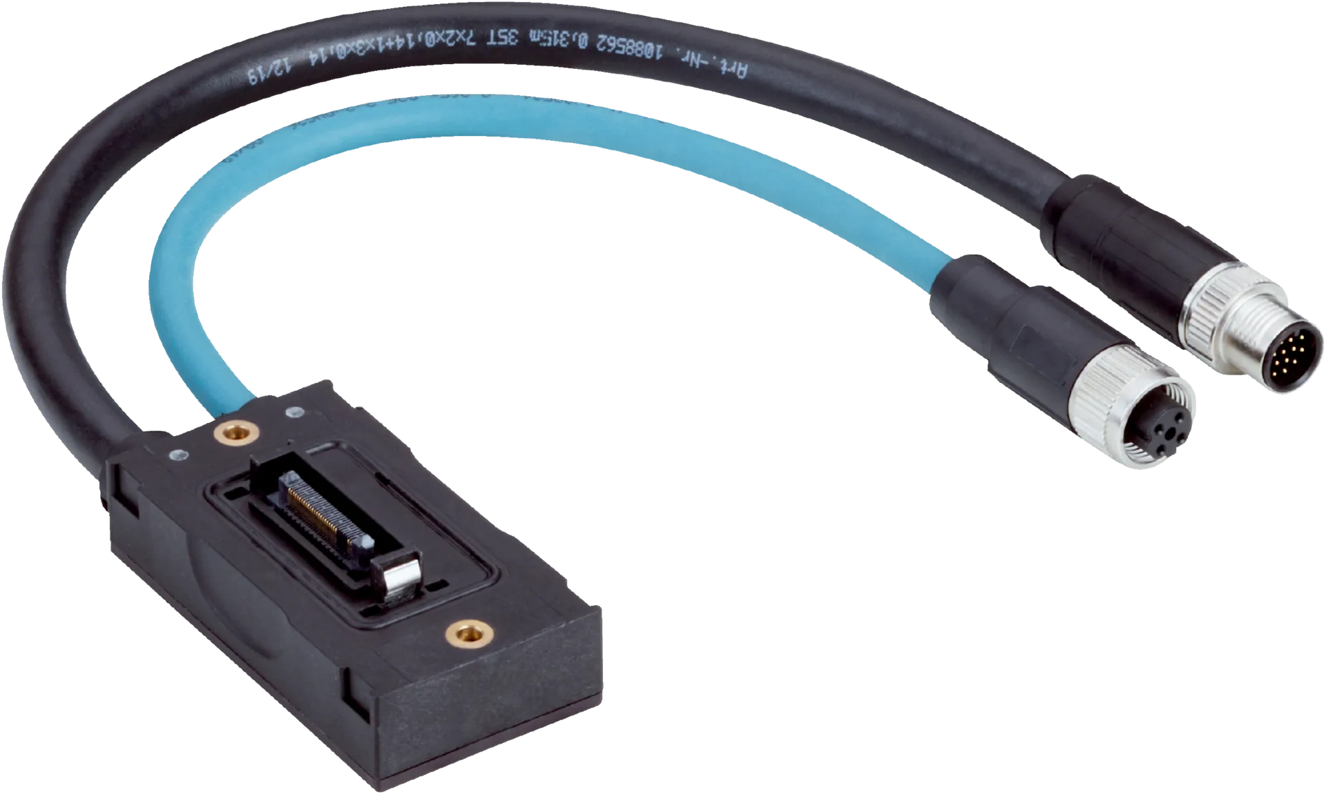 | Description | System connection; voltage supply: cable 300Â mm with M12 male connector, 17-pin, A-coded; Ethernet: cable 250Â mm with M12 female connector, 4-pin, D-coded |