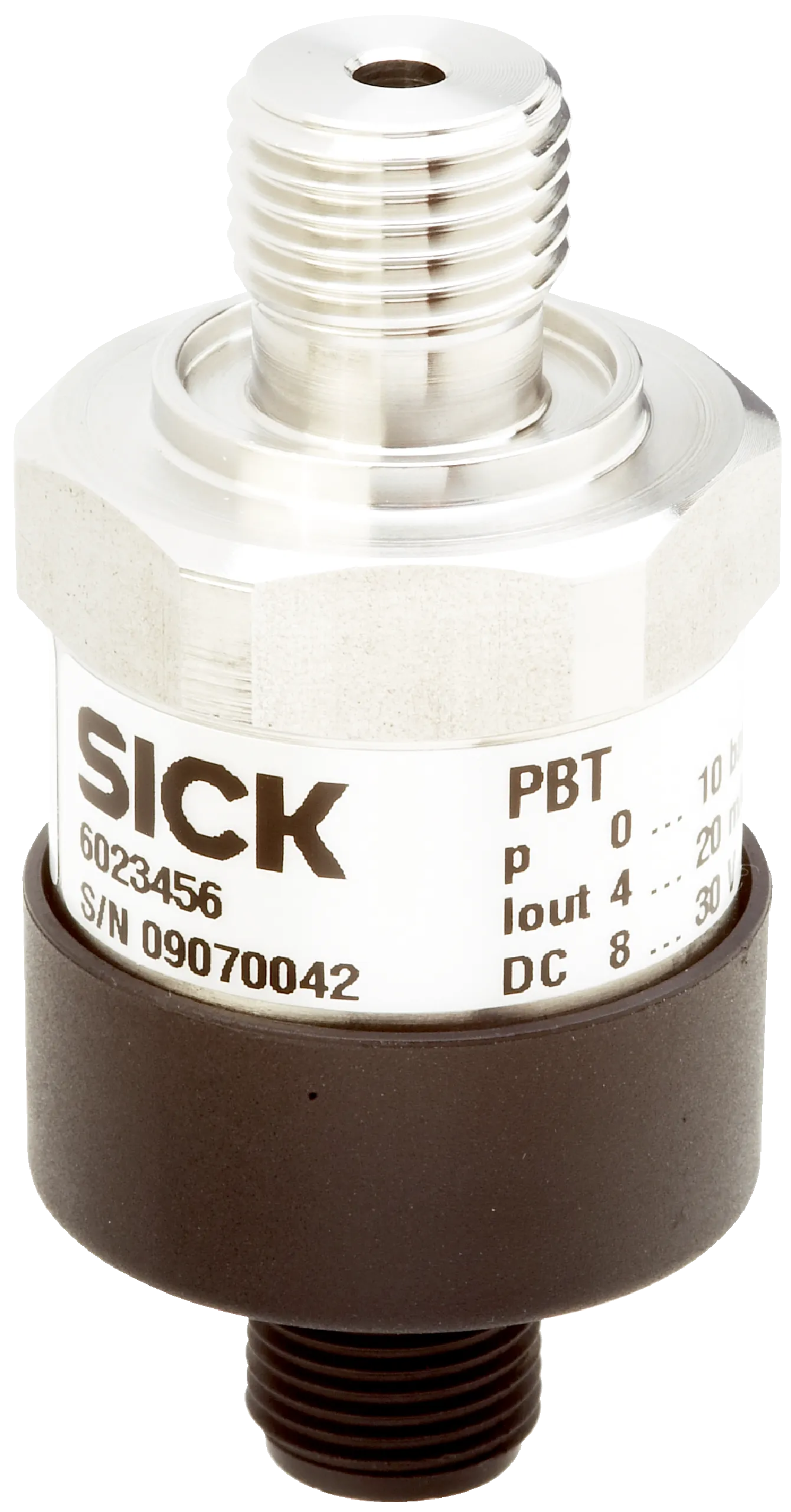 Pressure sensors | PBT | PBT-RB100SN1SS0AMA0Z | Pressure type: Gauge pressure | Pressure unit: bar | Measuring range: 0 bar … 100 bar | Accuracy: ≤ ± 1 %, of the span (including non-linearity, hysteresis, zero point and full scale error (corresponds to error of measurement as per IEC 61298-2)) | Process connection: ¼” NPT | Pressure port: Standard | Process temperature: 0 °C … +80 °C | Seal: Without seal | Communication interface: – | Output signal: 4 mA … 20 mA, 2-wire | Connection type: M12 round connector x 1, 4-pin, IP67 | Supply voltage: 8 V DC … 30 V DC