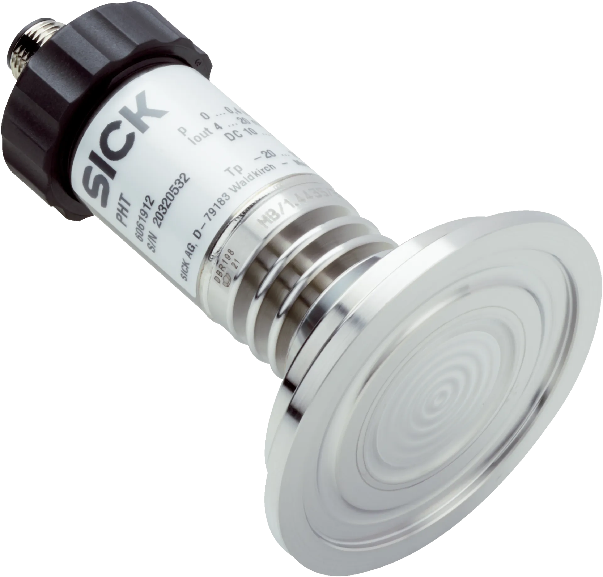 Pressure sensors | PHT | PHT-RBX40S740S0AMS0Z | Pressure type: Gauge pressure | Pressure unit: bar | Measuring range: 0 bar … 0.4 bar | Accuracy: ≤ ± 0.5 %, of the span (optional 0.25 % of span (adjusted in vertical mounting position with lower pressure connection)) | Process connection: Clamp (DIN 11864-3) DN 40 form A | Process temperature: –20 °C … +150 °C | Seal: Without seal | Communication interface: – | Output signal: 4 mA … 20 mA, 2-wire | Connection type: M12 round connector x 1, 4-pin, IP67 | Supply voltage: 10 V DC … 30 V DC
