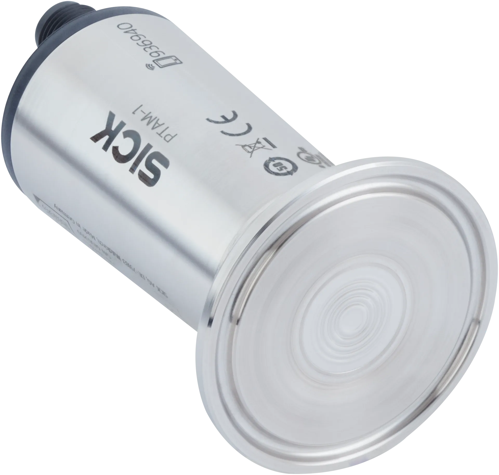 Pressure sensors | PTA | PTAM-1XXXXAVFMZB | Pressure type: Gauge pressure | Pressure unit: bar psi | Measuring chamber type: Metallic pressure measuring cell | Measuring range: 0 barĀ … 5 bar, 0 psiĀ … 72 psi | Accuracy: ≤ ± 0.3 %, of the span | Process connection: Clamp 1” (DINĀ 32676, ISOĀ 2852), PN 40, flush-mounted, 316L (Ra