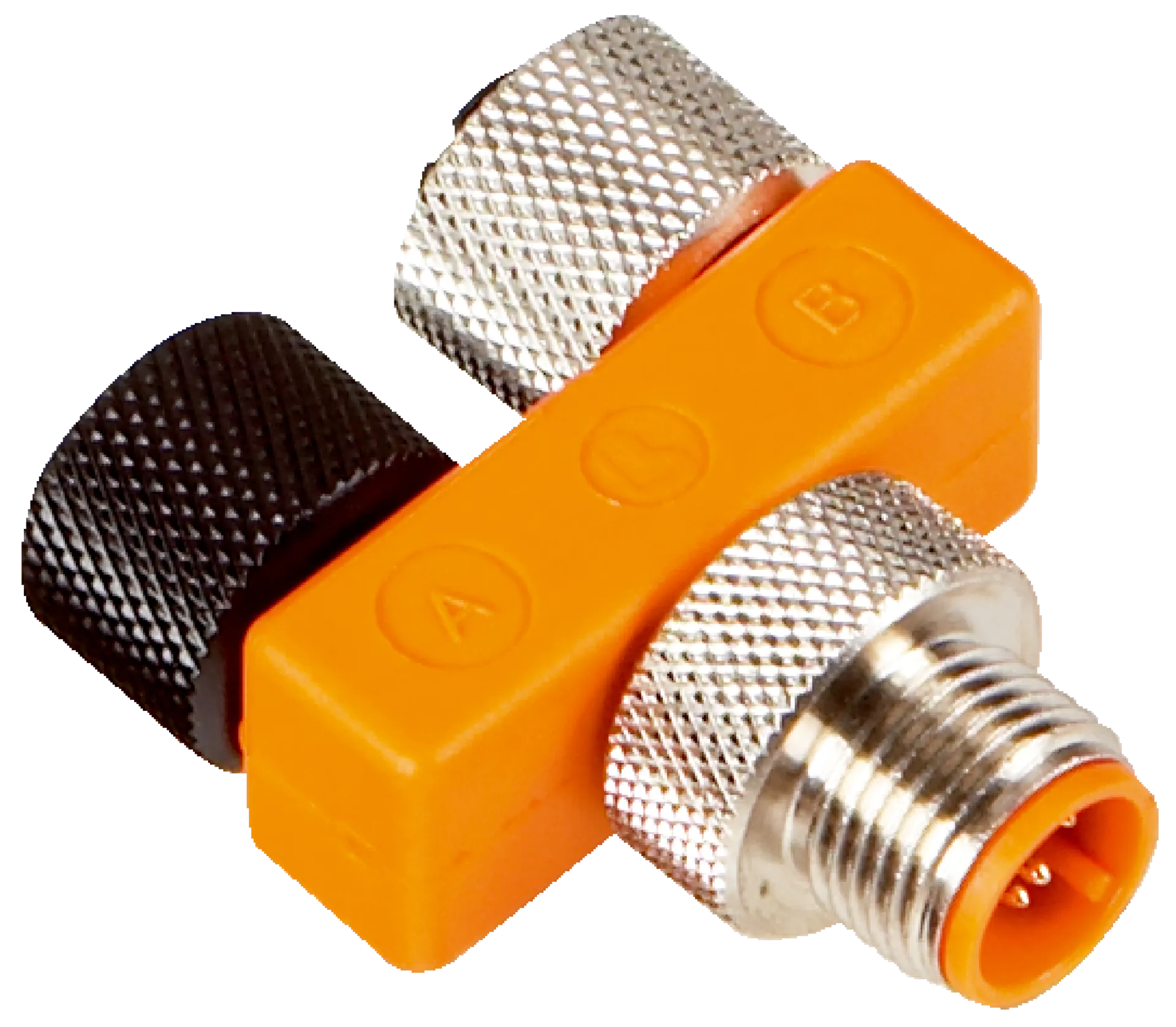Connectors and cables | Y- and T-splitters | SBO-02D12-SF | Connection type head A: Male connector, M12, 5-pin, A-coded | Connection type head B: Female connector, M12, 5-pin, A-coded | Connection type head C: Female connector, M12, 5-pin, A-coded | Description: Unshielded