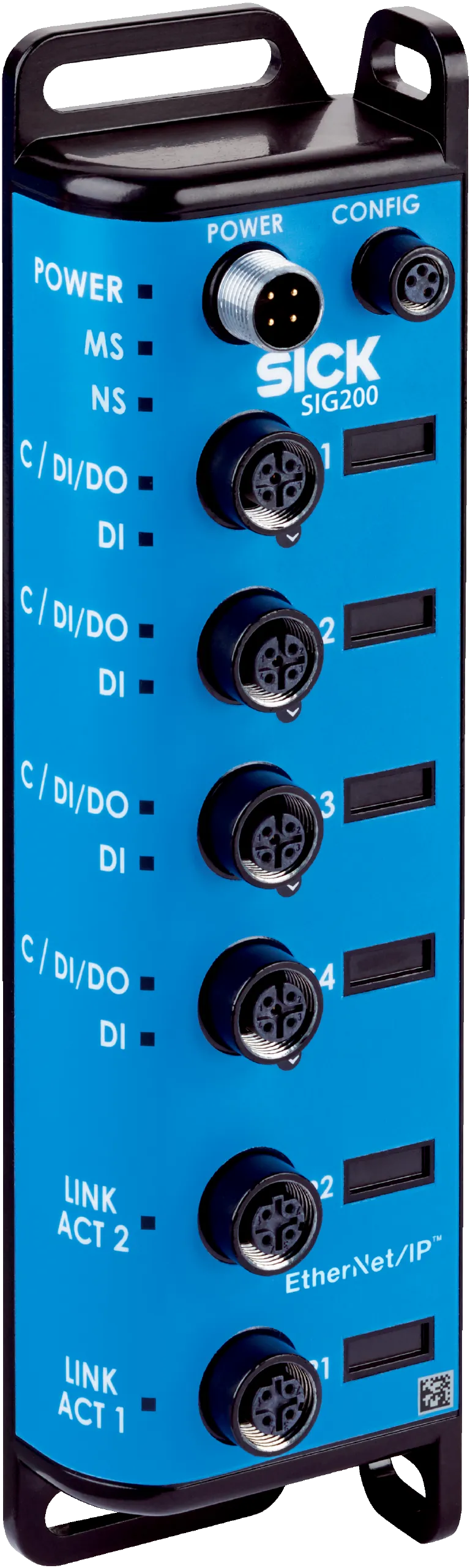Network devices | SIG200 | SIG200-0A0512200 | Product category: IO-Link Master | Communication interface: IO-LinkUSBEthernetEtherNet/IP™REST API | Supported products: IO-Link DevicesBinary actuatorsBinary switching sensors | Scope of delivery: SIG200-0A05122004x blind plugs (M12) on port S2, S3, S4, P21x blind plug (M8) on port CONFIGMarking labelsQuickstart | Further functions: Web server integratedUSB connection for easy configuration of the SIG200 Sensor Integration Gateway with SOPAS ET, the engineering tool from SICKLogic editor is available for easy configuration of logic functions