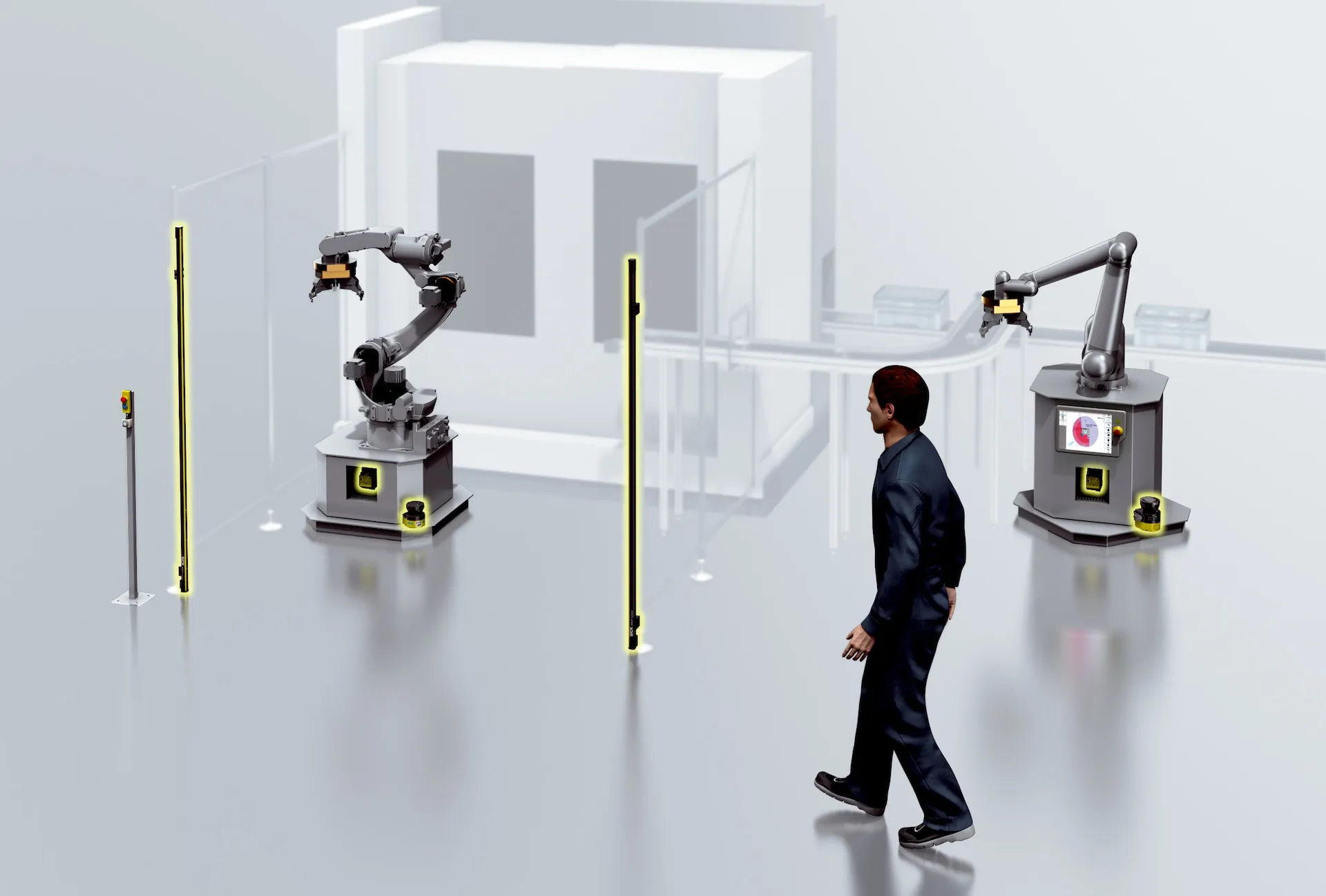 Safety systems | Safe Robotics Area Protection | SYS/BOT-URST4ESUA01NS3 | Variant: sBot Stop – URCap | Product type: System (hardware and software) | Robot controller: Universal Robots: UR3e, UR5e, UR…