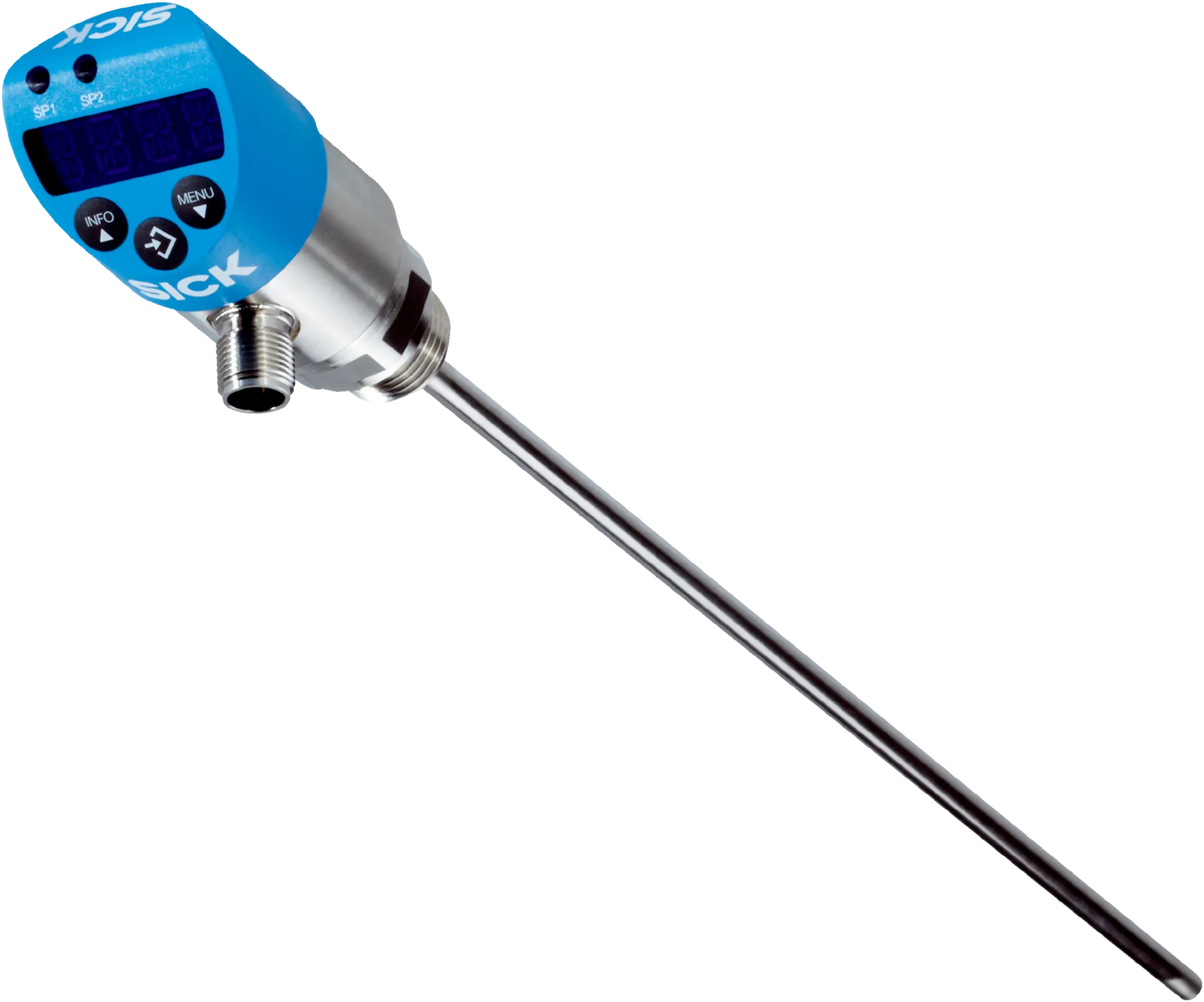 Temperature sensors | TBS | TBS-1QSG10506NE | Temperature measuring range: –20 °C … +80 °C | Process connection: Thread G ¼ A | Insertion length/diameter of probe: 50 mm / 6 mm | Seal: NBR | Output signal: IO-Link/PNP + PNP + 4 mA … 20 mA | Connection type: Round connector M12 x 1, 5-pin | Enclosure rating: IP65, IP67 | Communication interface: IO-Link