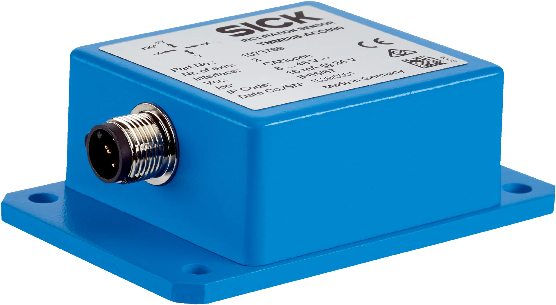 Inertial sensors | TMS/TMM88 | TMS88B-ACC360 | Number of axis: 1 | Measuring range: 360° | Resolution: 0.01° | Communication interface: CANopen | Programmable/configurable: yes | Programming interface: Over PGT-12-Pro | Housing material: Aluminum | Connection type: Male connector, M12, 5-pin