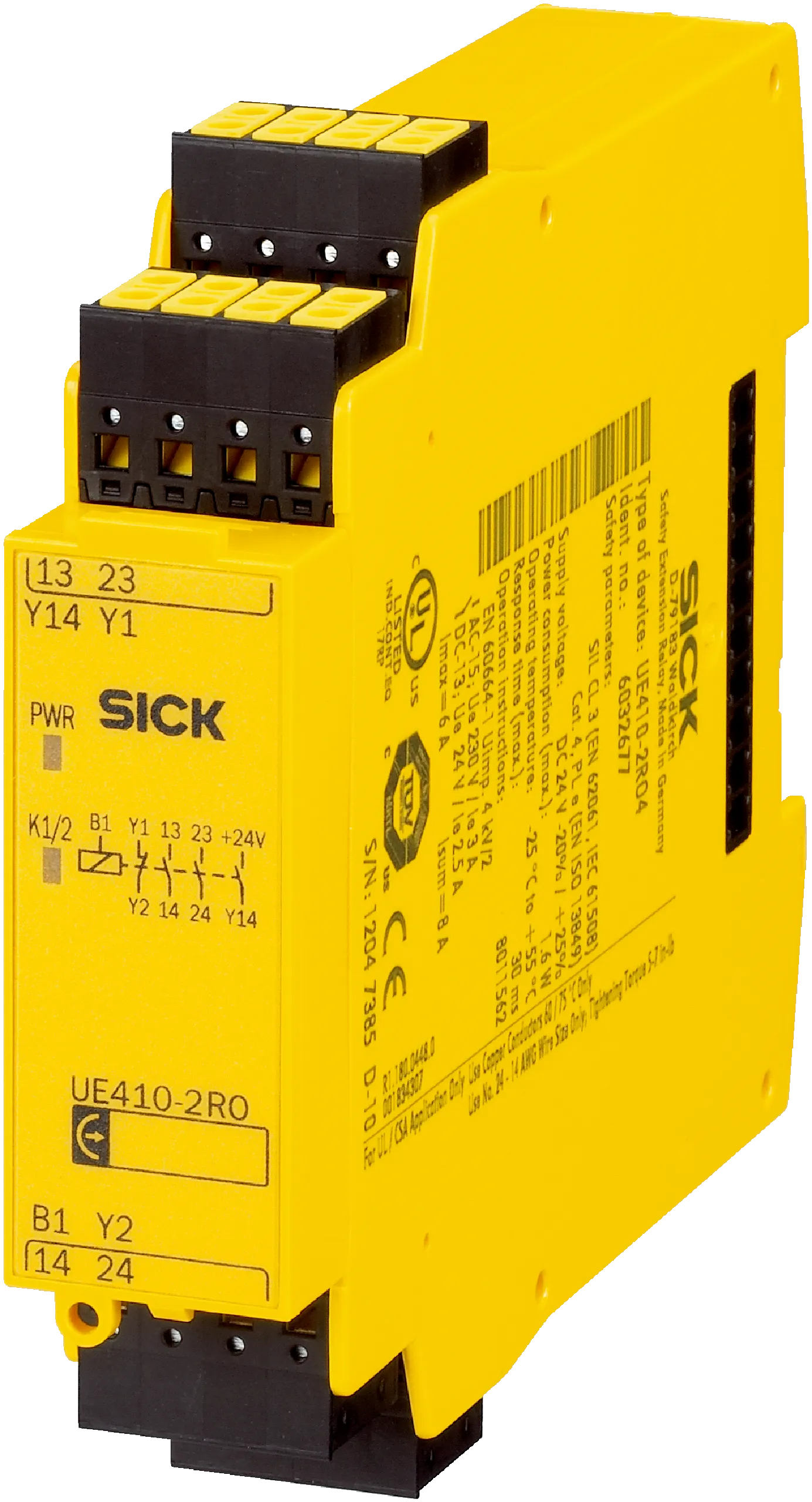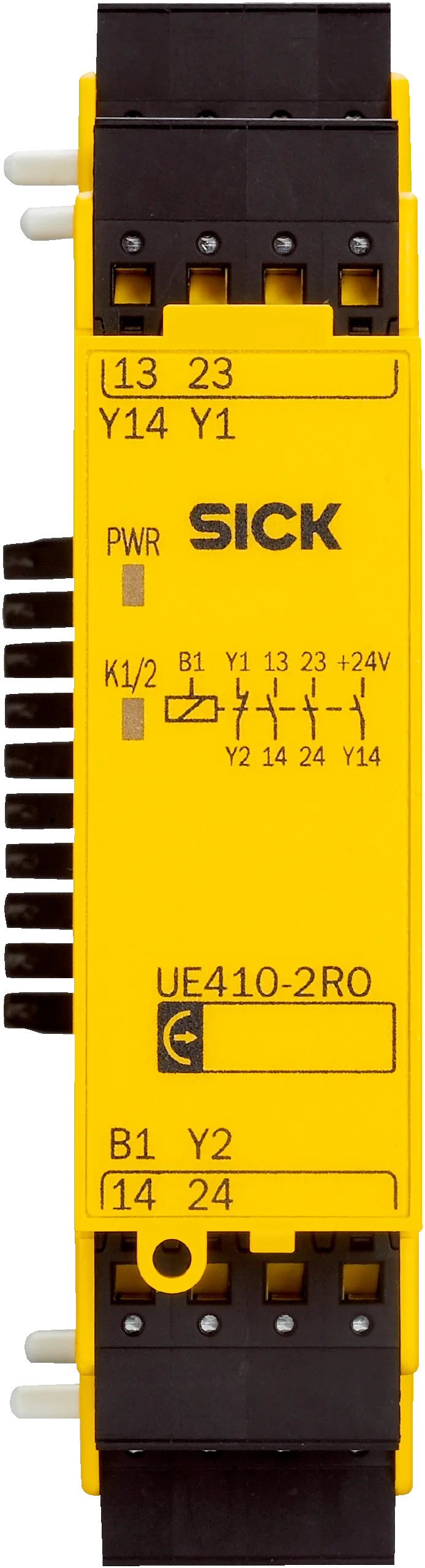 Safety controllers | Flexi Classic | UE410-2RO4 | Module: Relay module | Specialization: Relay expansion module | Outputs: 2 enabling current paths | Connection type: Plug-in spring terminals | Protective coating for more challenging ambient conditions: no