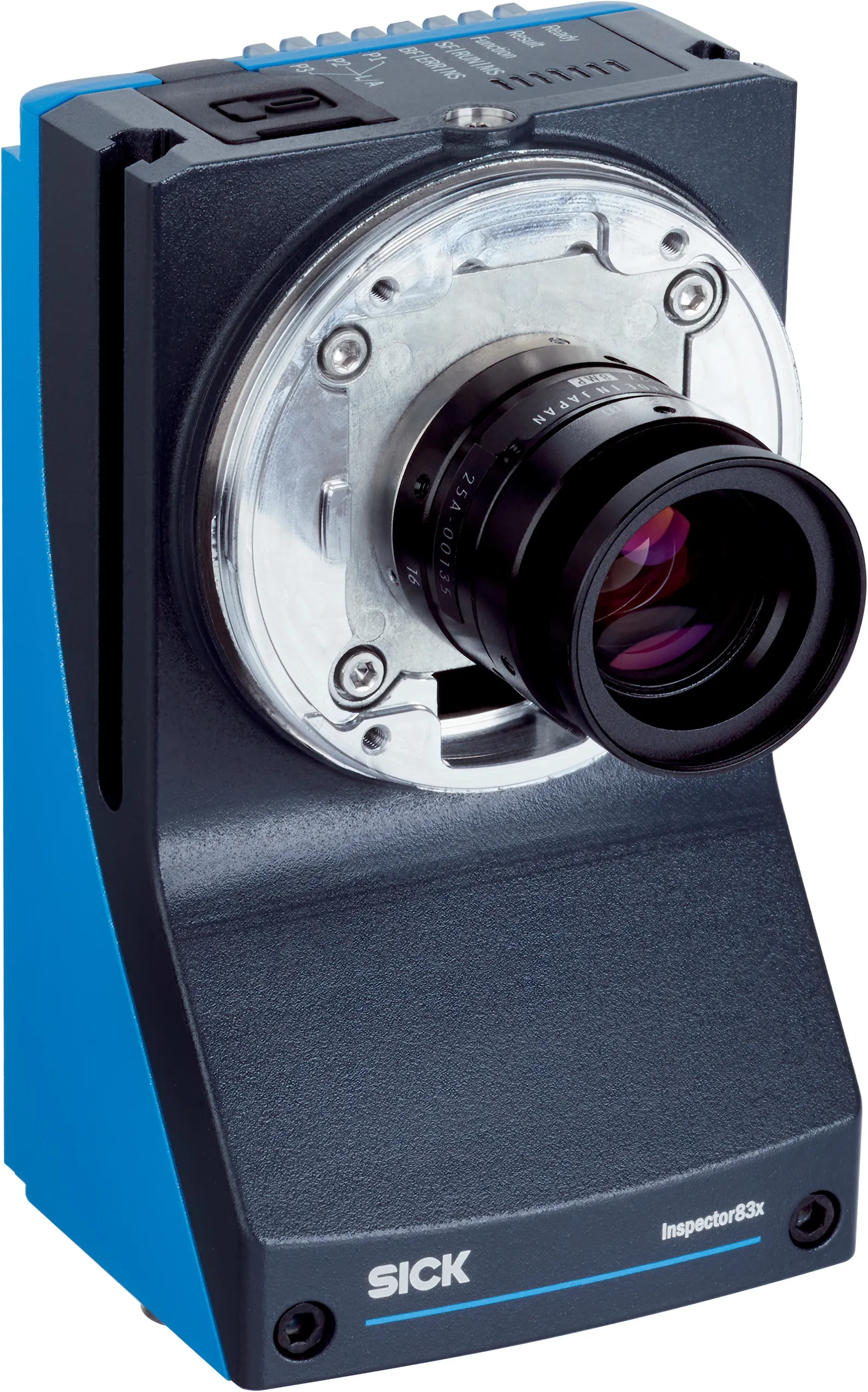 Machine vision | Inspector83x | V2D8305P-1CCICXAF1SXXXX | License included: Intelligent Inspection License | Illumination: Integrated | Illumination color: White | Lens: 12 mm, C-mount | Working distance: 200 mm … 2,500 mm | Sensor resolution: 2,464 px x 2,048 px (5.1 MP) | Sensor: CMOS Color | Optical focus: Adjustable focus (manually)