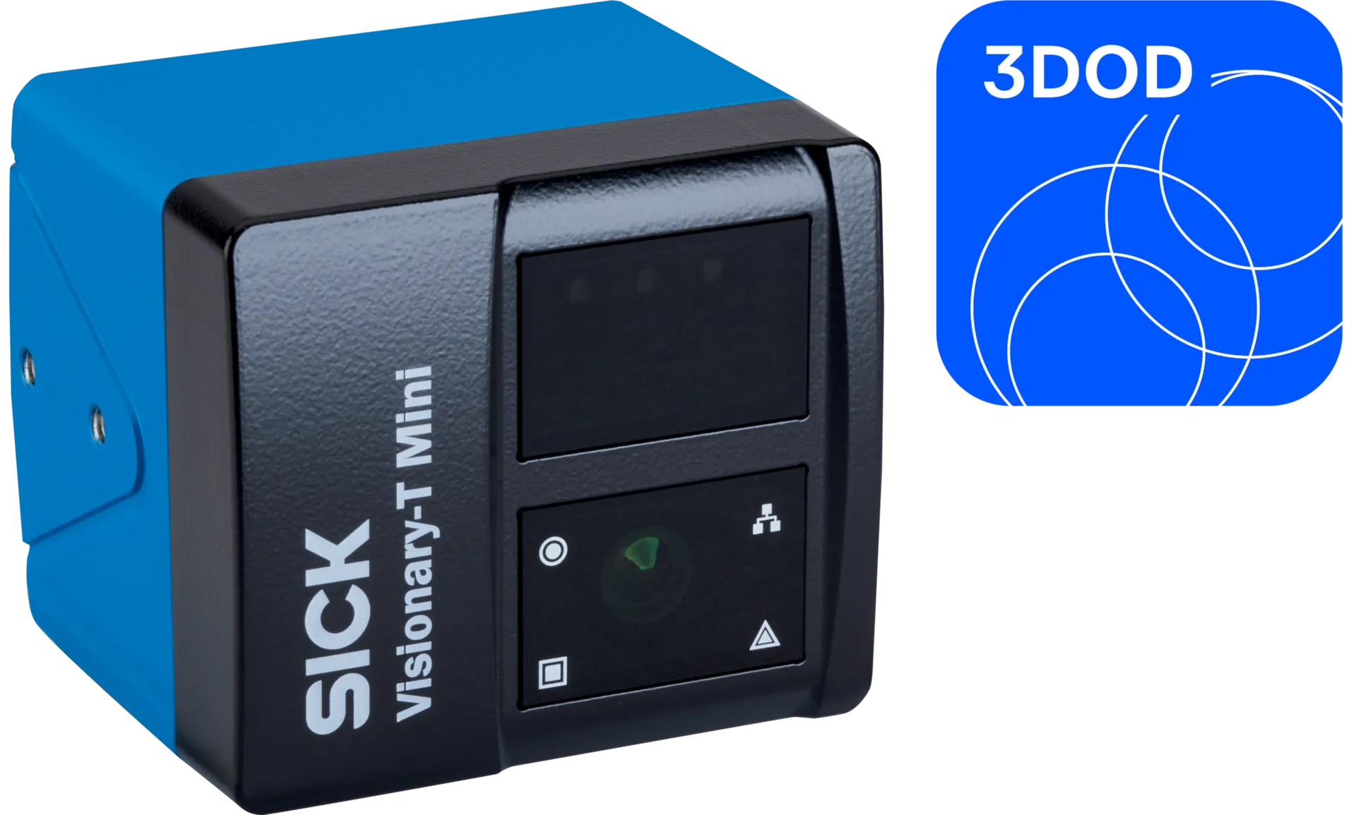 Machine vision | Visionary-T Mini | V3S145-1AAAACA OD Core | Product version: Visionary-T Mini AP | Integrated application: The installed 3D Object Detection SICK SensorApp allows flexibly customizabl…