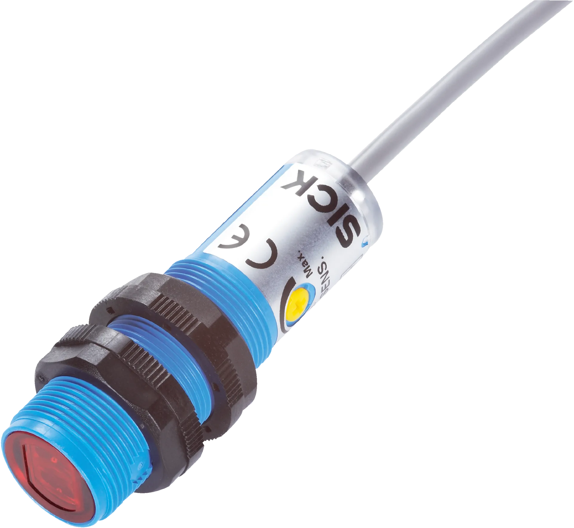 Photoelectric sensors | V180 | VSE180-2P41137 | Functional principle: Through-beam photoelectric sensor | Switching output: PNP | Switching mode: Light/dark switching | Connection type: Cable, 4-wire, 2 m | Light source: LED | Adjustment: Potentiometer | Communication interface: – | Included with delivery: Fastening nuts (4Â x)
