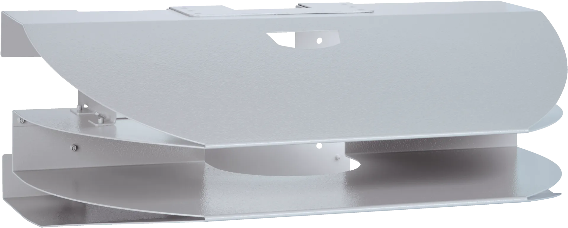 Device protection and care | Protective caps and hoods | Weather protection hood | Description: Weather protection hood (180°), vertical mounting. In applications with high shock/vibration requirements, the optics cover must be checked regularly for damage. | Material: Aluminum (powder-coating) | Items supplied: Weather hood, 8 x M6 x 10 screws, stainless steel, 8 x D6.4 washers, stainless steel | Suitable for: LMS511, LMS531, LMS581