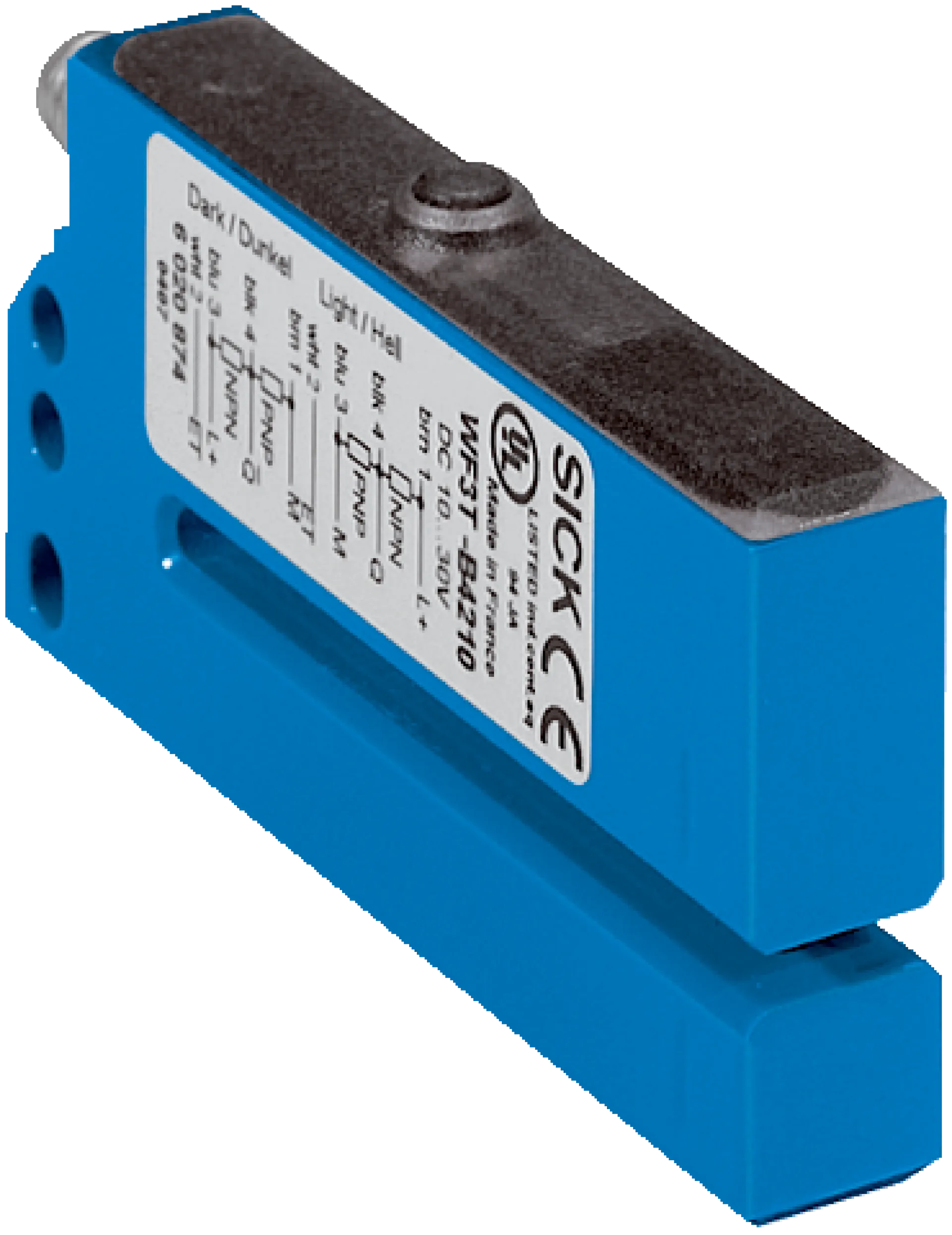 Fork sensors | WF | WF3T-B4210 | Light source: LED | Fork width/depth: 3 mm, 60 mm | Switching output: PNP/NPN | Switching mode: Light/dark switching | Connection type Detail: Male connector M8, 4-pin | Switching frequency: 10 kHz | Response time: ≤ 50 µs | Enclosure rating: IP65