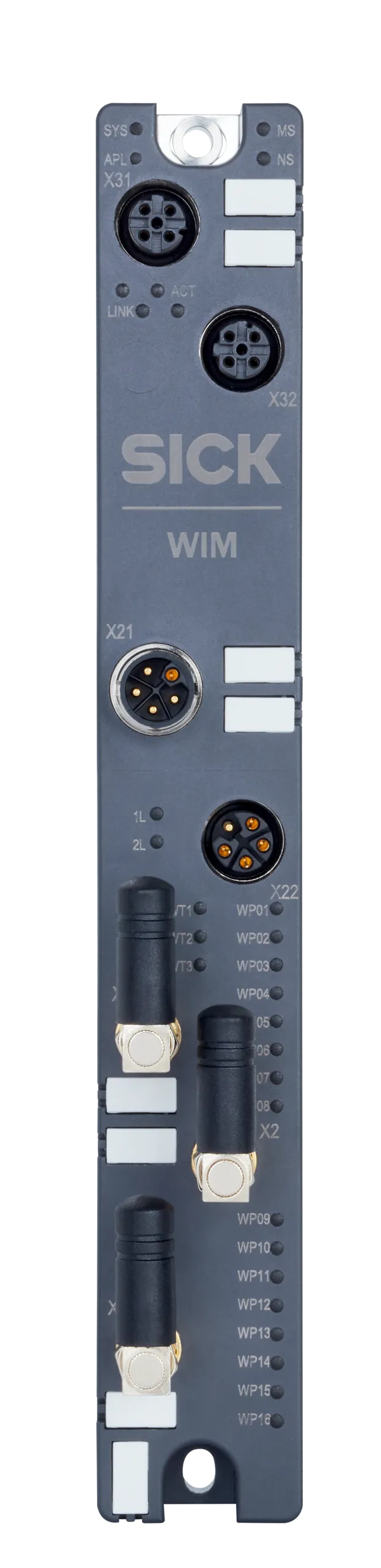 Network devices | IO-Link Wireless Gateway | WIM 2EI-1041 | Product category: IO-Link Wireless | Communication interface: Ethernet, EtherNet/IP™, REST API, OPC UA | Supported products: IO-Link Devices | Scope of delivery: WIM 2EI-1041 | Further functions: Initial setup, configuration and monitoring using WIE, via an internal Web Server interface or by a PLC