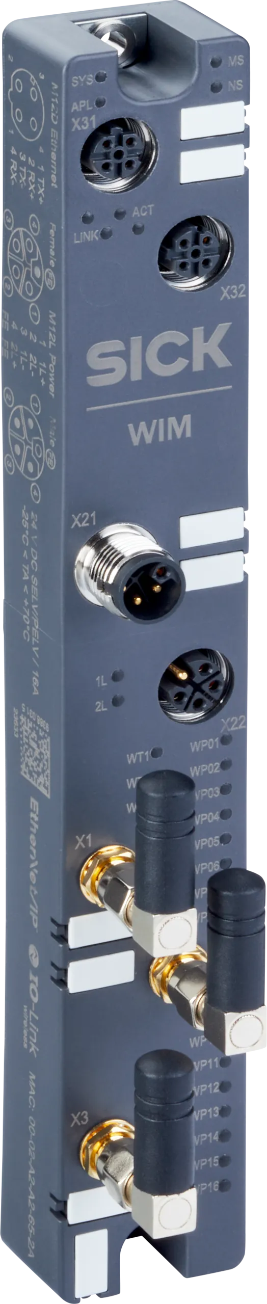 Network devices | IO-Link Wireless Gateway | WIM 2PN-1041 | Product category: IO-Link Wireless | Communication interface: Ethernet, PROFINET, REST API, OPC UA | Supported products: IO-Link Devices | Scope of delivery: WIM 2PN-1041 | Further functions: Initial setup, configuration and monitoring using WIE, via an internal Web Server interface or by a PLC