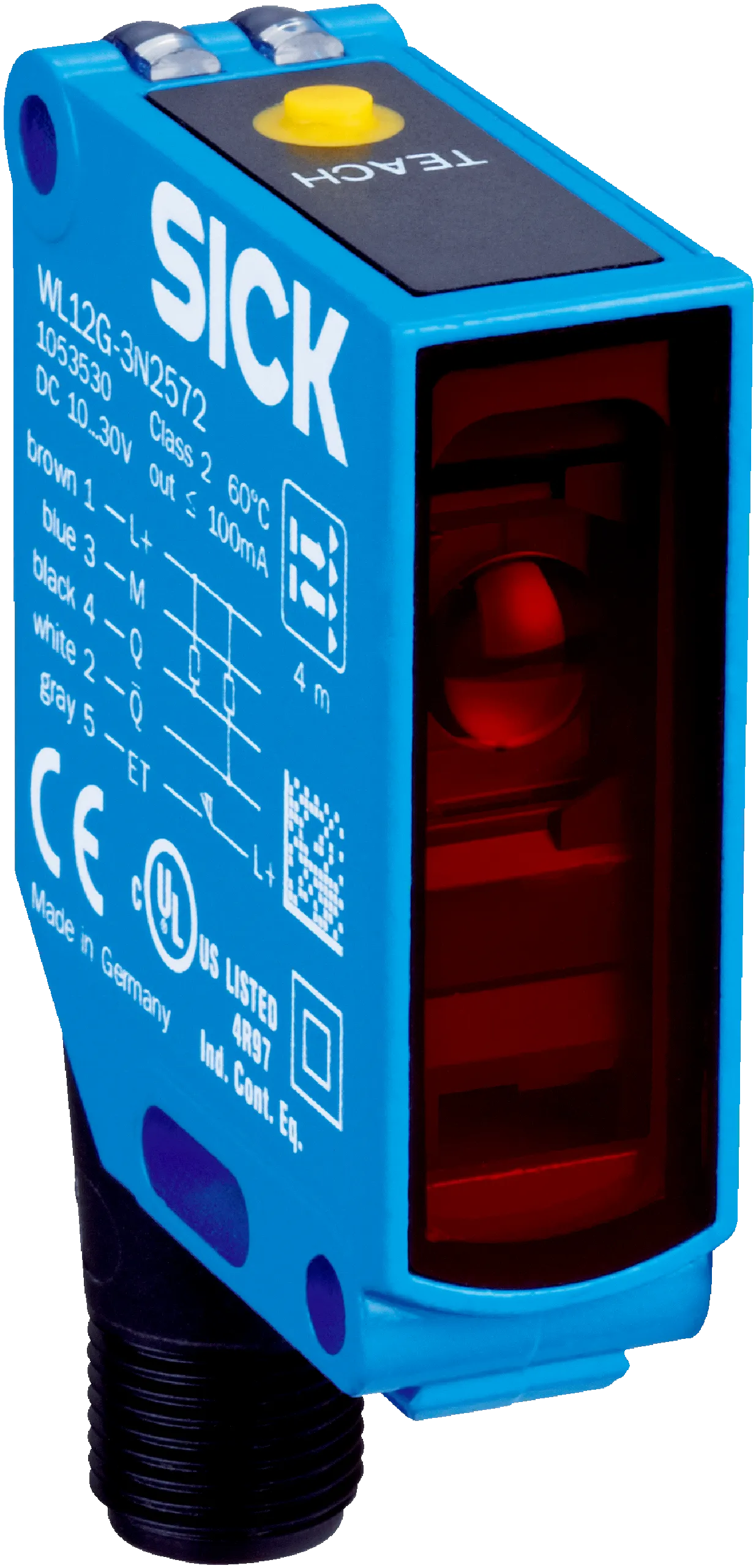 Photoelectric sensors | W12G | WL12GC-3P2472B01 | Sensing range max.: 0 m … 4 m | Functional principle: Photoelectric retro-reflective sensor | Functional principle detail: Without reflector minimum distance (autocollimation/coaxial optics) | Switching output: PNP | Switching mode: Light/dark switching | Connection type: Male connector M12, 4-pin | Light source: PinPoint LED | Type of light: Visible red light | Housing material: Zinc diecast | Adjustment: IO-Link, Teach-in button | Communication interface: IO-Link V1.1 | Smart Sensor: Enhanced Sensing, efficient communication, diagnosis, Smart Task | Smart Task name: Timestamp + debouncing | Special features: Functions compatible with WL12GC-3P2472A91 | Housing: Rectangular