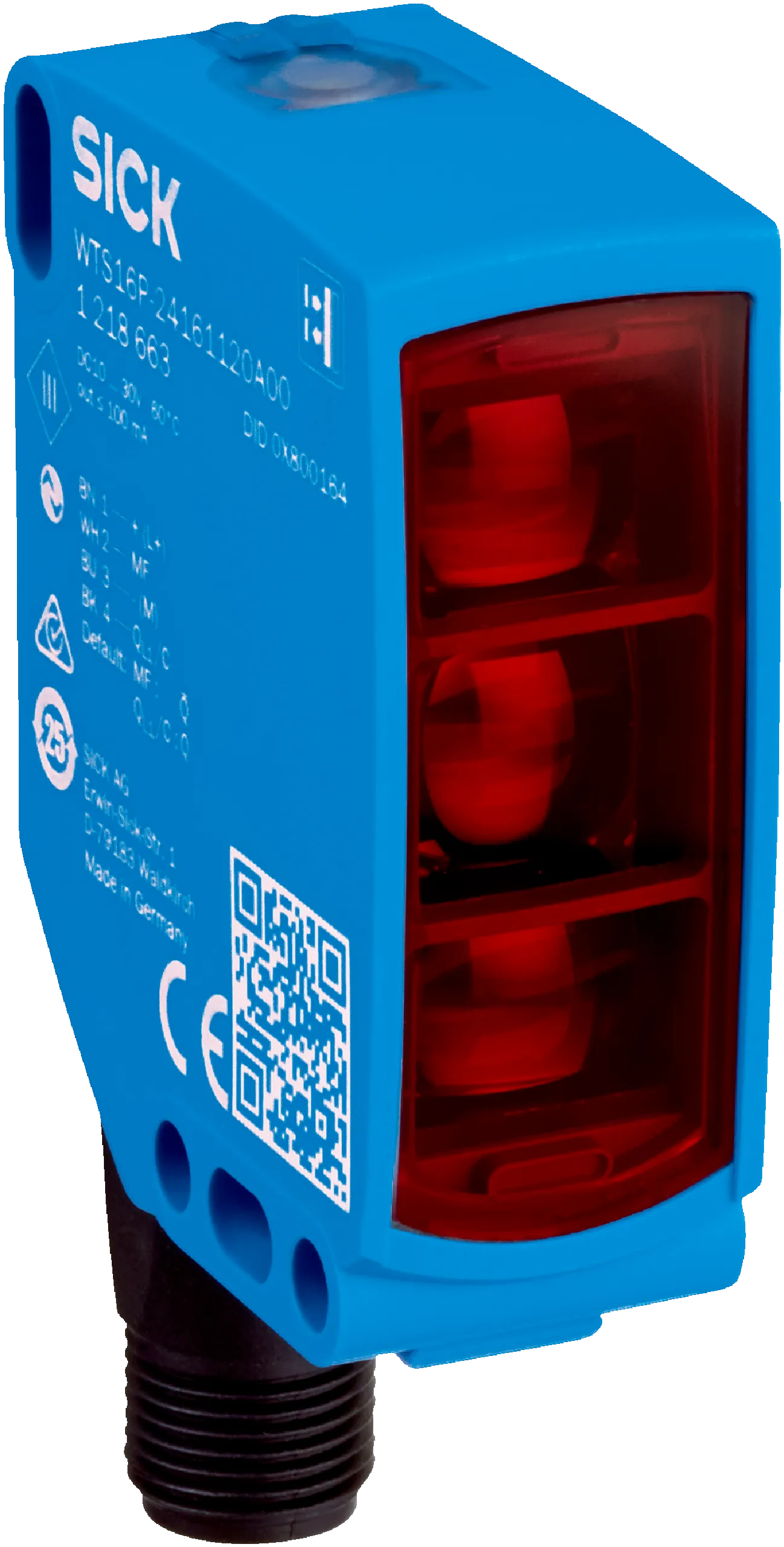 Photoelectric sensors | W16 | WTS16P-24161300CZZ | Sensing range min. / max.: 50 mm / 750 mm | Functional principle: Photoelectric proximity sensor | Functional principle detail: Background suppression, TwinEye technology, MultiPulse | Switching output: Push-pull: PNP/NPN | Connection type: Male connector M12, 4-pin | Light source: PinPoint LED | Type of light: Visible red light | Housing material: VISTAL® | Adjustment: IO-Link | Communication interface: IO-Link V1.1 | Smart Sensor: Enhanced Sensing, efficient communication, Smart Task | Smart Task name: Base logics | Special features: Factory setting: sensing range 205 mm, Dynamic blind zone 50 mm … 75 mm, Factory setting: sensing range 205 mm, MultiPulse: sensor with self-monitoring | Housing: Rectangular