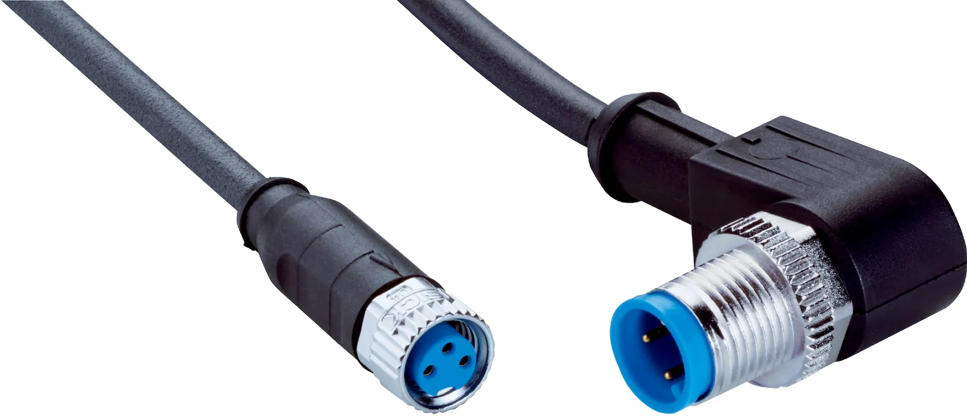 Connectors and cables | Sensor-actuator cables | YF8U13-100UA1N2A13 | Connection type head A: Female connector, M8, 3-pin, straight, A-coded | Connection type head B: Male connector, M12, 3-pin, angle…