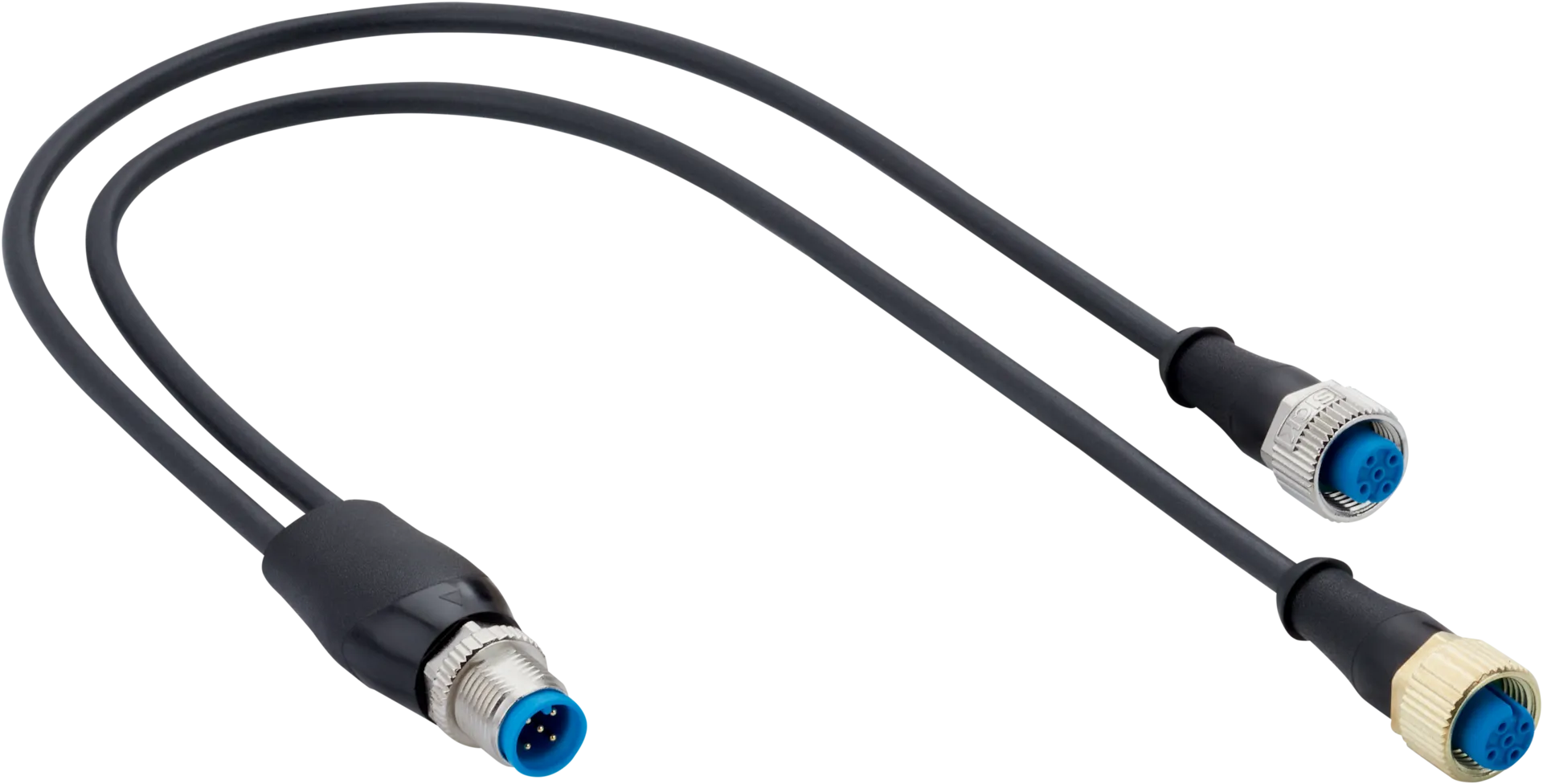 Connectors and cables | Y- and T-splitters | YM2A15-C30UB3FY2A4 | Connection type head A: Female connector, M12, 5-pin, A-coded | Connection type head B: Female connector, M12, 4-pin, A-coded | Connec…