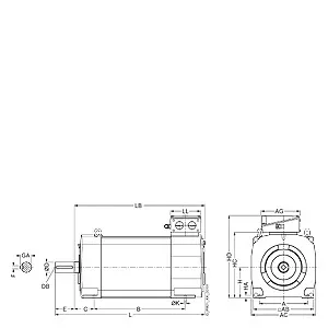 SIMOTICS M compact asynchronous motor 700 r/min, 43 kW, 587 Nm, 97 A, 330 V 800 r/min, 49 kW, 585 Nm, 99 A, 360 V 1000 r/min, 61 kW, 583 Nm, 98 A, 450 V water cooling IP55 degree of protection