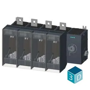 switch disconnector with fuse 400 A, frame size 4, 4-pole for LV HRC fuse size 1 and 2 lateral operating mechanism rig basic unit without handle flat connector without fuses