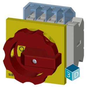 SENTRON, Switch disconnector 3LD, emergency switching-off switch, 4- pole, Iu: 16 A, operating power / at AC-23 A 400 V: 7.5 kW, front-mounted, 1 NC, 1 NO, rotary operating mechanism, Red / yellow, 4-hole mounting of the handle