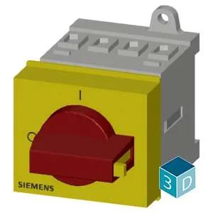 SENTRON, Switch disconnector 3LD, emergency switching-off switch, 4- pole, Iu: 16 A, operating power / at AC-23 A 400 V: 7.5 kW, installation in distribution boards, knob-operated mechanism, Red / yel…