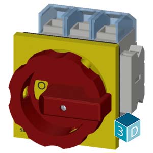 SENTRON, Switch disconnector 3LD, emergency switching-off switch, 3- pole, Iu: 125 A, operating power / at AC-23 A 400 V: 45 kW, front-mounted, 1 NC, 1 NO, rotary operating mechanism, Red / yellow, 4-…