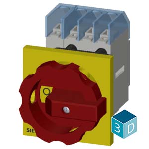 Load disconnector 3LD3, Iu 63 A Main switch 3-pole + N Rated operating capacity at AC-23 A at 400V 22.0 kW Front plate mounting Basic switch with Central hole mounting 22.5mm Toggle drive red / yellow…