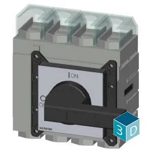 SENTRON 3LD5 switch disconnector UL, main switch, 4-pole, approved according to UL 489, UL 60947-4-1 and IEC 60947-3, UL: 150 A, SCCR 50 kA at 480 V AC, operational power @ 480 V AC 3-phase: 100 hp, IEC: 160 A, operational power at AC-23 A at 400 V: 75 kW, front-mounted: rotary operating mechanism, black, 4-hole mounting of the handle, including terminal covers for the infeed side infeed side