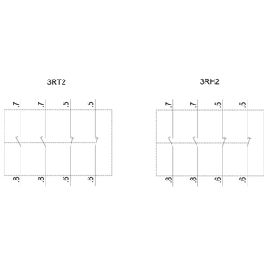 auxiliary switch, on the front, 2 NO + 2 NC, 22 U, .7/.8, .7/.8, .5/.6, .5/.6, current path: 1 NO (leading), 1 NO (leading), 1 NC (lagging), 1 NC (lagging), screw terminal, for contactors 3RT2 and con…
