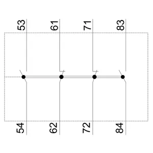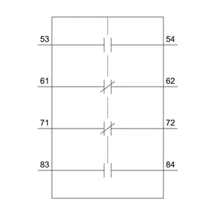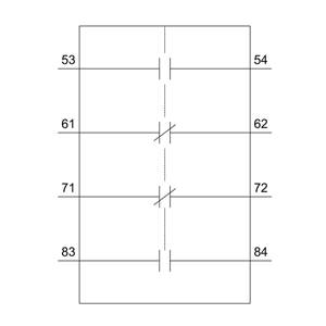 auxiliary switch, on the front, 2 NO + 2 NC, 53/54, 61/62, 71/72, 83/84, current path: 1 NO, 1 NC, 1 NC, 1 NO, screw terminal, physically coded, only with contactor relays 3RH2140 and 3RH2440 combinable (according to EN 50011), reusable packaging, pack = 351 units