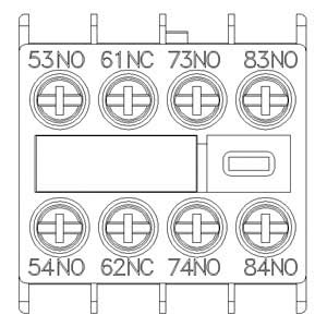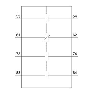 auxiliary switch, on the front, 3 NO + 1 NC, 53/54, 61/62, 73/74, 83/84, current path: 1 NO, 1 NC, 1 NO, 1 NO, screw terminal, physically coded, only with contactor relays 3RH2140 and 3RH2440 combinable (according to EN 50011)