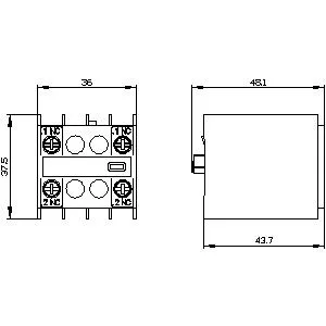 auxiliary switch, solid-state compatible, on the front, 2 NC, .1/.2, –/–, –/–, .1/.2, current path: 1 NC (solid-state compatible), –, –, 1 NC (solid-state compatible), screw terminal, for contac…