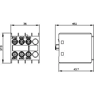 auxiliary switch, on the front, 2 NO + 1 NC, 31/32, 43/44, 53/54, –/–, current path 1 NC, 1 NO, 1 NO, –, screw terminal, for contactors 3RT2 and contactor relays 3RH2