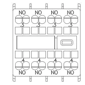 auxiliary switch, on the front, 4 NO, .3/.4, .3/.4, .3/.4, .3/.4, current path: 1 NO, 1 NO, 1 NO, 1 NO, spring-loaded terminal, for contactors 3RT2 and contactor relays 3RH2, multi-unit packaging, pac…