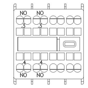 auxiliary switch, on the front, 2 NO, .3/.4, .3/.4, –/–, –/–, current path: 1 NO, 1 NO, –, –, spring-loaded terminal, for contactors 3RT2 and contactor relays 3RH2, reusable packaging, pack = 32…