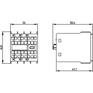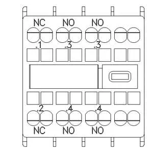 auxiliary switch, on the front, 2 NO + 1 NC, .1/.2, .3/.4, .3/.4, –/–, current path: 1 NC, 1 NO, 1 NO, –, spring-loaded terminal, for contactors 3RT2 and contactor relays 3RH2