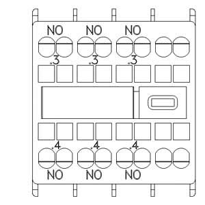 auxiliary switch, on the front, 3 NO, .3/.4, .3/.4, .3/.4, –/–, current path: 1 NO, 1 NO, 1 NO, –, spring-loaded terminal, for contactors 3RT2 and contactor relays 3RH2