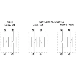 auxiliary switch, solid-state compatible, lateral, 1 NO + 1 NC, on the left: 51/52, 63/64, current path: 1 NC, 1 NO, on the right: 33/34, 41/42, current path: 1 NO, 1 NC, spring-loaded terminal, for contactors 3RT2 and contactor relays 3RH2
