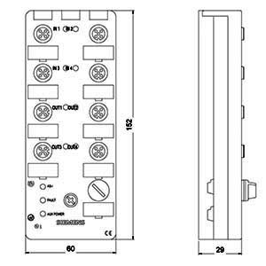 AS-i Compact Module K60 digital A/B device, 8 DI, IP67, 8 x input, maximum 2000 mA sensor supply 24 V DC 8 x M12 socket Y-II assignment mounting plate 3RK1901-0CA00 must be ordered separately