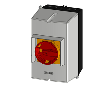 Cast aluminum surface mounting enclosure Degree of protection IP65 72 mm installation width, PE terminal with rotary operating mechanism yellow/red for circuit breaker Size S0