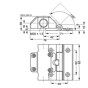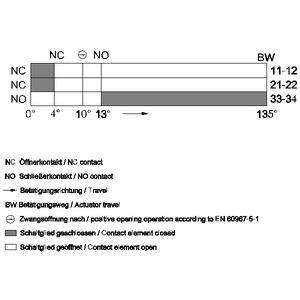Hinge switch Molded-plastic enclosure with aluminum hinge 1 NO/2 NC, Slow-action contacts for 40 mm profiles Supplied with additional hinge and fixing material Actuating angle 4°