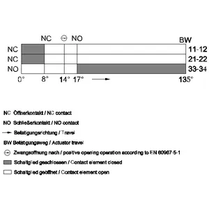 Hinge switch Molded-plastic enclosure with aluminum hinge 1 NO/2 NC slow-action contacts for 40 mm profiles Actuating angle 8° Supplied with additional hinge and fixing material