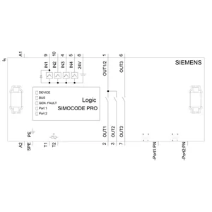 basic device SIMOCODE pro V PN, Ethernet/PROFINET IO, PN system redundancy, OPC UA server, web server, transfer rate 100 Mbps, 2 x bus connection via RJ45, 4 I/3 O freely configurable, Us: 24 V DC, in…