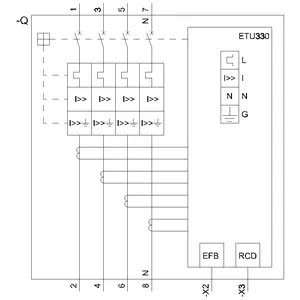 circuit breaker 3VA2 IEC Frame 100 breaking capacity class C Icu=110 kA @ 415 V 4-pole, line protection ETU330, LIG, In=25 A overload protection Ir=10 A…25 A short-circuit protection Ii=1.5…12 x In neutral conductor protection adjustable (OFF, 100%) ground-fault protection Ig=0.6…1 x In= tg=0.1/0.3s terminal connection