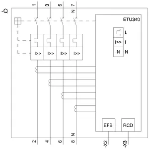 circuit breaker 3VA2 IEC Frame 160 breaking capacity class C Icu=110 kA @ 415 V 4-pole, line protection ETU340, ELISA LI, In=100 A overload protection Ir=40 A…100 A short-circuit protection Ii=15 x In neutral conductor protection adjustable (OFF, 50%, 100%) terminal connection