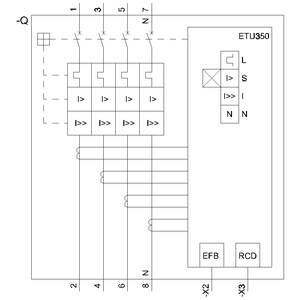 circuit breaker 3VA2 IEC Frame 630 breaking capacity class H Icu=85 kA @ 415 V 4-pole, line protection ETU350, LSI, In=630 A overload protection Ir=250 A…630 A short-circuit protection Isd=1.5…9x…