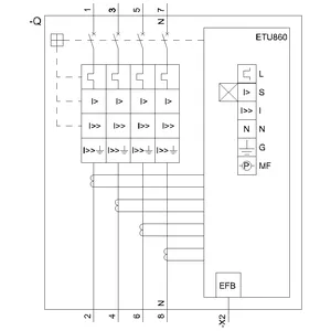 circuit breaker 3VA2 IEC Frame 1000 breaking capacity class C Icu=110 kA @ 415 V 4-pole, line protection ETU860, LSIG, In=1000 A overload protection Ir=400 A…1000 A short-circuit protection Isd=0.6..10x In, Ii=1.5..10x In neutral conductor protection adjustable (OFF, up to 100%) ground-fault protection, can be switched off Ig=0.2…1 x In= tg=0.05-0.8s nut keeper kit